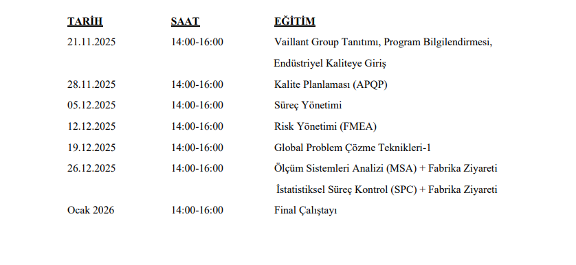 Öğrencilerimizi program boyunca Vaillant Group’un profesyonelleriyle bir araya getiren ESTÜVAILLANT GROUP KALİTE Akademi Programı 21 Kasım Cuma günü saat 14:00’de başlayacaktır.