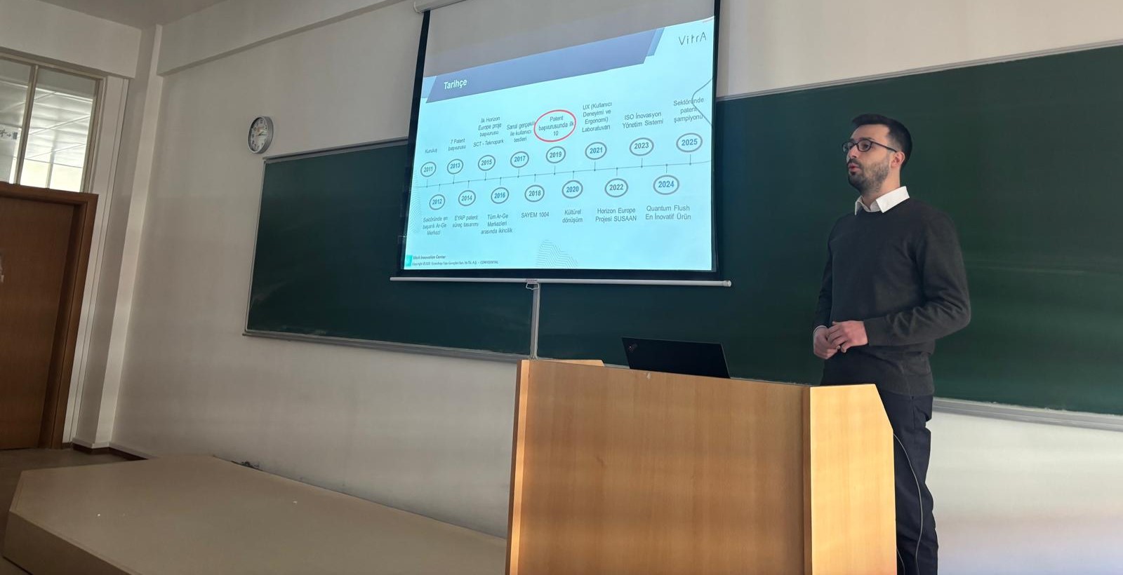 Eğitimin ilk bölümünde söz alan İnovasyon Projeleri Yöneticisi Sayın Soykan Aksel, VitrA’nın Ar-Ge ve patent stratejileri hakkında katılımcılara detaylı bilgiler sundu. Sayın Aksel; başarıyla hayata geçirilen yenilikçi projelerden ve bu projelere ivme kazandıran destek programlarından bahsederek, öğrencilere sektördeki inovasyon kültürü hakkında geniş bir perspektif kazandırdı.