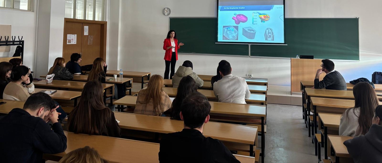 Programın devamında Ar-Ge Baş Mühendisi Sayın Seyhan Çiçek, VitrA’daki ürün geliştirme süreçlerini ve kullanıcı deneyimi (UX) odaklı yaklaşımları ele aldı. Sayın Çiçek, kullanıcı deneyiminin ürün tasarımına nasıl entegre edildiğini uygulamalı çalışma örnekleri üzerinden aktararak, teorik süreçlerin üretim pratiğine nasıl dönüştüğünü somut örneklerle gösterdi.