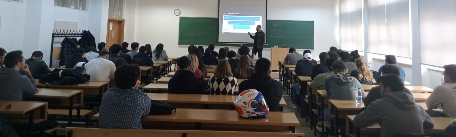Moderatörlüğünü Araş. Gör. Cemile Kayış’ın üstlendiği programda, Ford Otosan Yazılım Geliştirme Kıdemli Uzmanı Ahmet İcat tarafından “Dijital Dönüşüm ve Yapay Zekâ” başlıklı bir sunum yapıldı.