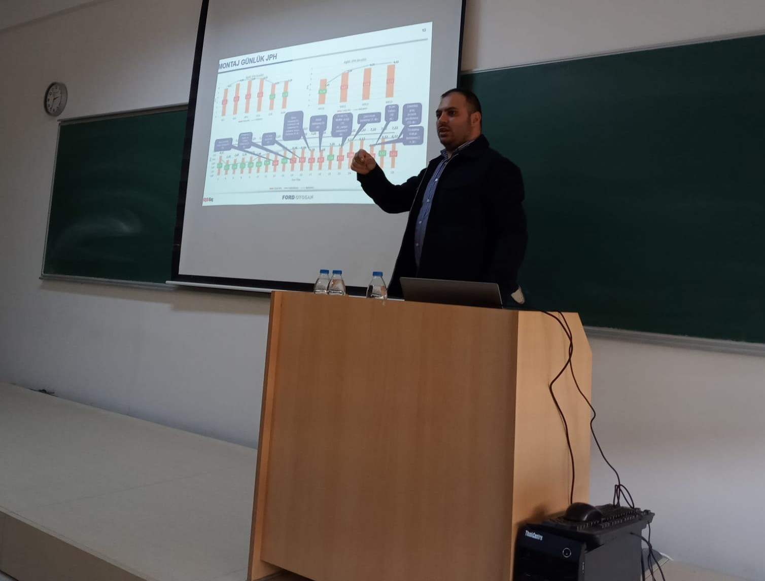 Programın devamında, konveyör hattındaki iş sağlığı ve güvenliği (İSG) ile ergonomi problemlerine yönelik yürütülen çalışmalar hakkında bilgi verildi. Framing ve Pres hatlarında gerçekleştirilen otomasyon uygulamaları ile kalite kontrol süreçlerinde kullanılan görüntü işleme yöntemlerine değinildi. Bununla birlikte, farklı uygulamalarda insan gücü ile yürütülen işlerin otomasyona devredilmesi sürecindeki projelendirme faaliyetleri ve yatırım maliyetlerinin planlanmasına ilişkin kritik hususlara dikkat çekildi.