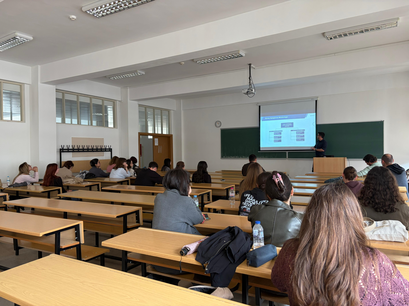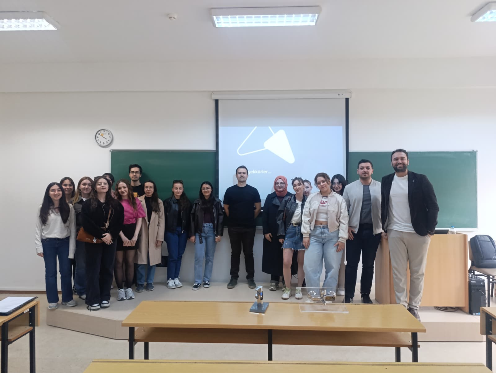 15 Nisan 2026 tarihinde gerçekleştirilen dördüncü eğitimde, VitrA Üretim Mühendisi Sayın Furkan Esendemir, armatür üretim süreçlerine dair kapsamlı bir sunum yaptı. Üretim bandındaki teknik detayları ve mühendislik uygulamalarını aktaran Sayın Esendemir’in ardından, İnsan Kaynakları Yöneticisi Sayın Sertaç Demirkan öğrencilerin sorularını yanıtladı. Sayın Demirkan, iş dünyasının genç yeteneklerden beklentileri ve profesyonel kariyer planlaması konularında öğrencilere stratejik tavsiyelerde bulundu.